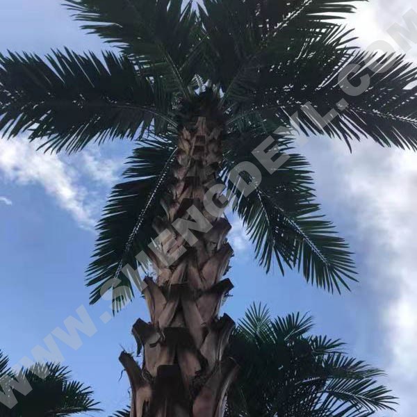 仿真棕櫚樹主要采用璃鋼樹脂樹桿材料結構,用高性能環氧樹脂和玻璃纖維纏繞成型,樹桿內采用國標鋼結構,樹葉采用ABS塑料或PU等高性能防阻燃環保材料。具有耐腐蝕性能、耐高溫、防阻燃,使用更加環保。