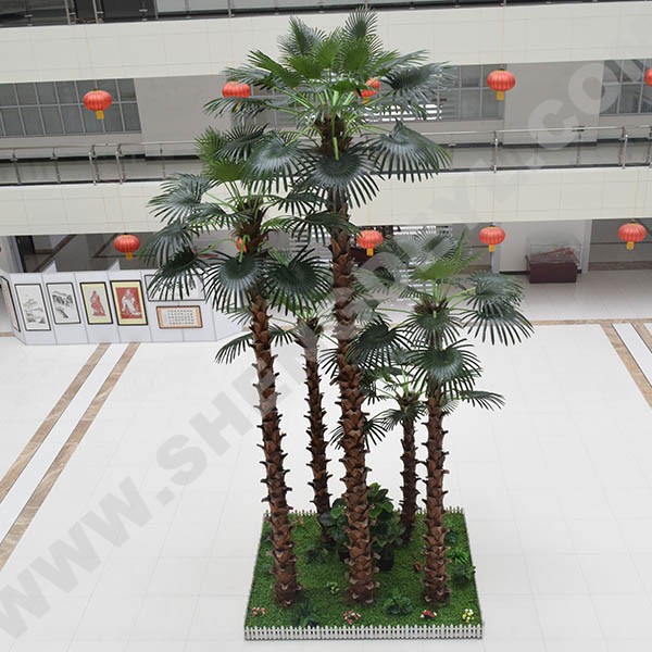仿真棕櫚樹主要用于酒店、公園、商業街、廣場、河道、車站、禮堂、娛樂場所、生態園林、小區庭院、展覽館、超市、辦公室、家庭等各種場合,美化環境,而且經久不衰。