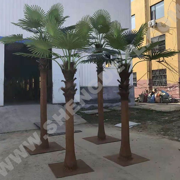 仿真棕櫚樹主要采用璃鋼樹脂樹桿材料結構,用高性能環氧樹脂和玻璃纖維纏繞成型,樹桿內采用國標鋼結構,樹葉采用ABS塑料或PU等高性能防阻燃環保材料。具有耐腐蝕性能、耐高溫、防阻燃,使用更加環保。